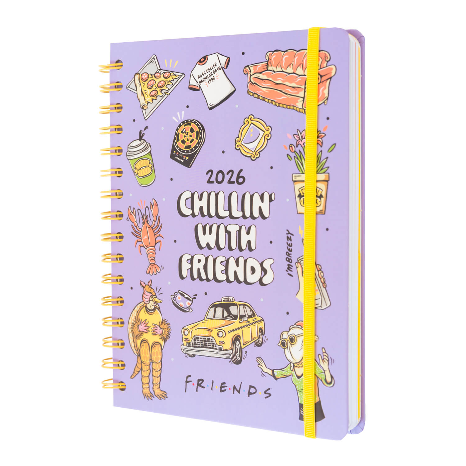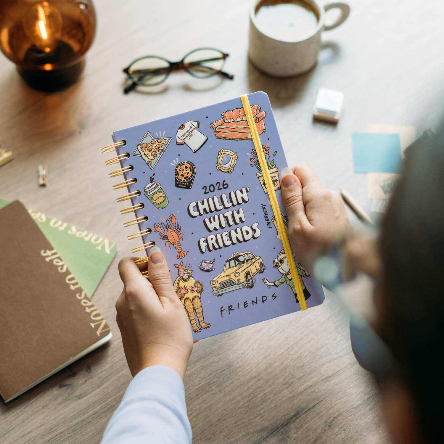 La agenda anual 2026 de Friends tiene una duración total de 12 meses que abarcan desde Enero hasta Diciembre de 2026. Tiene formato semana vista y tamaño A5 con unas medidas de 14,8 cm de ancho por 21 cm de alto.