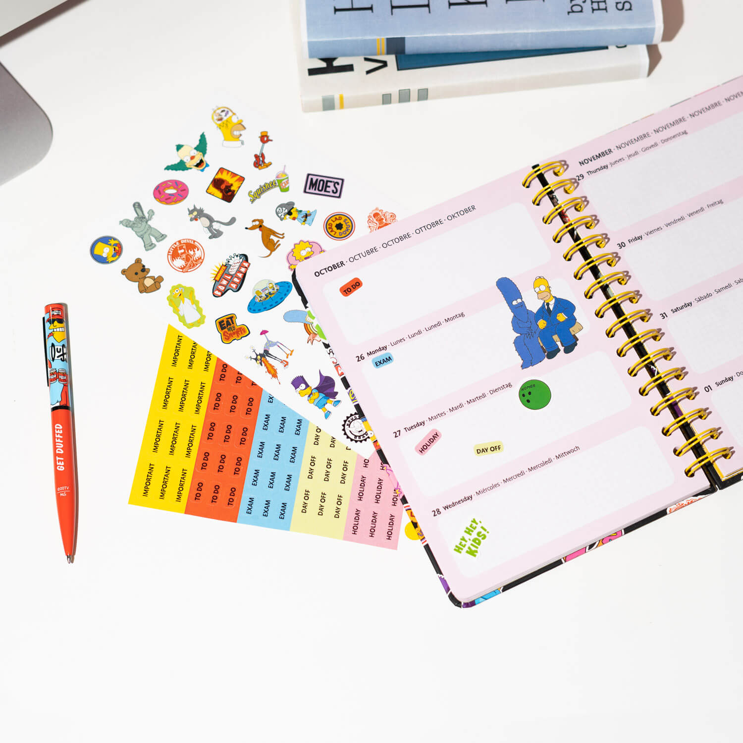 La agenda anual 2026 de Los Simpson tiene una duración total de 12 meses que abarcan desde Enero hasta Diciembre de 2026. Tiene formato semana vista y tamaño A5 con unas medidas de 14,8 cm de ancho por 21 cm de alto.
