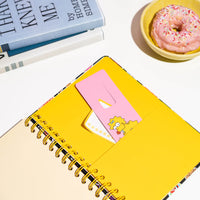 Contiene 176 páginas de 100 g/m2 con diseño interior personalizado y un bolsillo en la parte trasera. Incluye 2 páginas de pegatinas y 2 marcapáginas troquelados. Idiomas incluidos: español, inglés, francés, italiano y alemán.