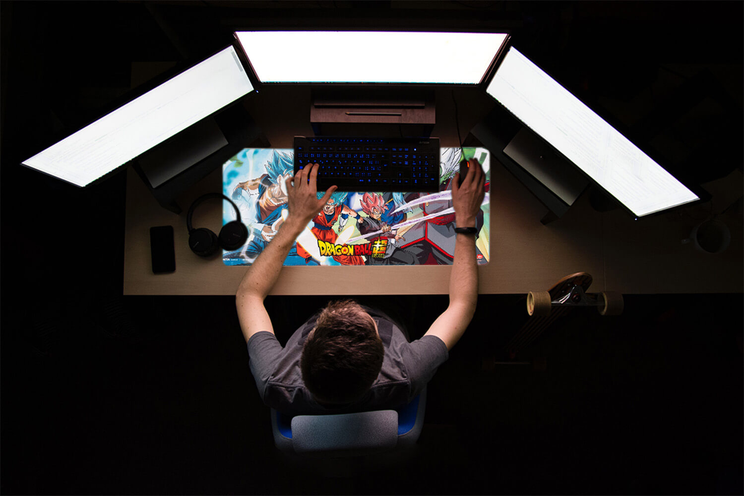 Este mousepad de la saga Dragon Ball Super es el complemento ideal para darle a tu setup o escritorio un toque original con tus héroes favoritos de la serie de Akira Toriyama. Su tamaño XL de 80 centímetros de ancho por 35 de alto le aporta un espacio amplio que permite la colocación tanto del teclado como del ratón.