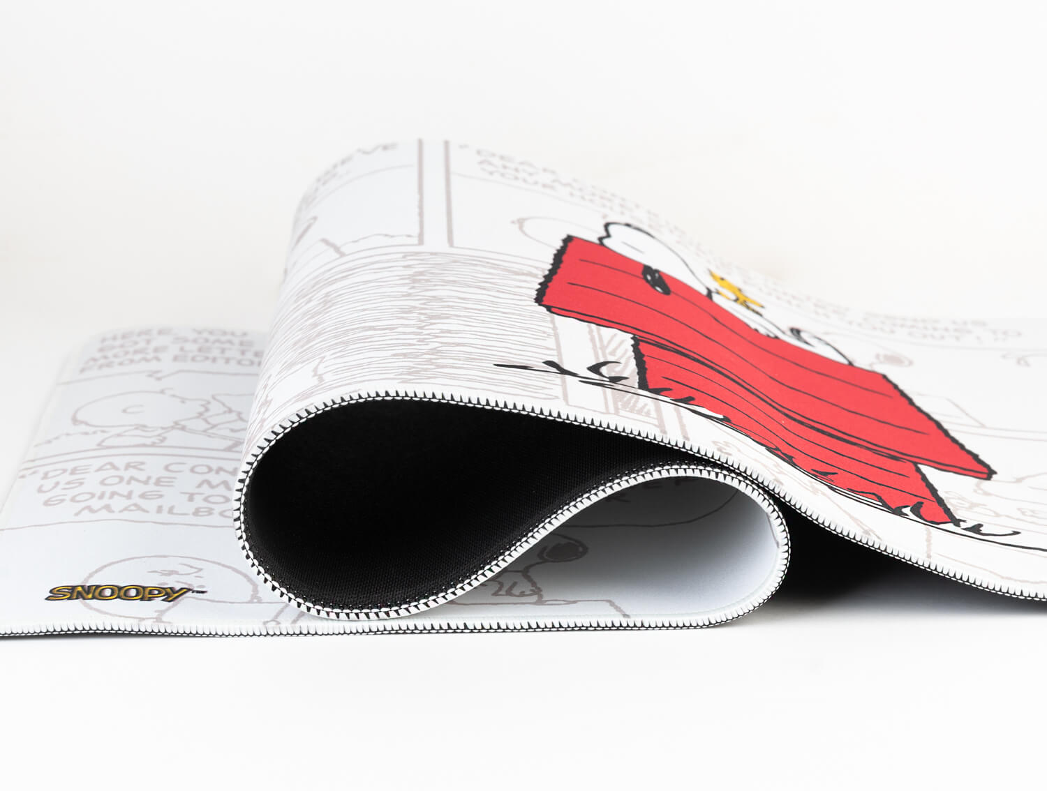 Este mousepad de Snoopy es el complemento ideal para darle a tu escritorio un toque original. Su tamaño XL de 80 centímetros de ancho por 35 de alto le aporta un espacio amplio que permite la colocación tanto del teclado como del ratón.