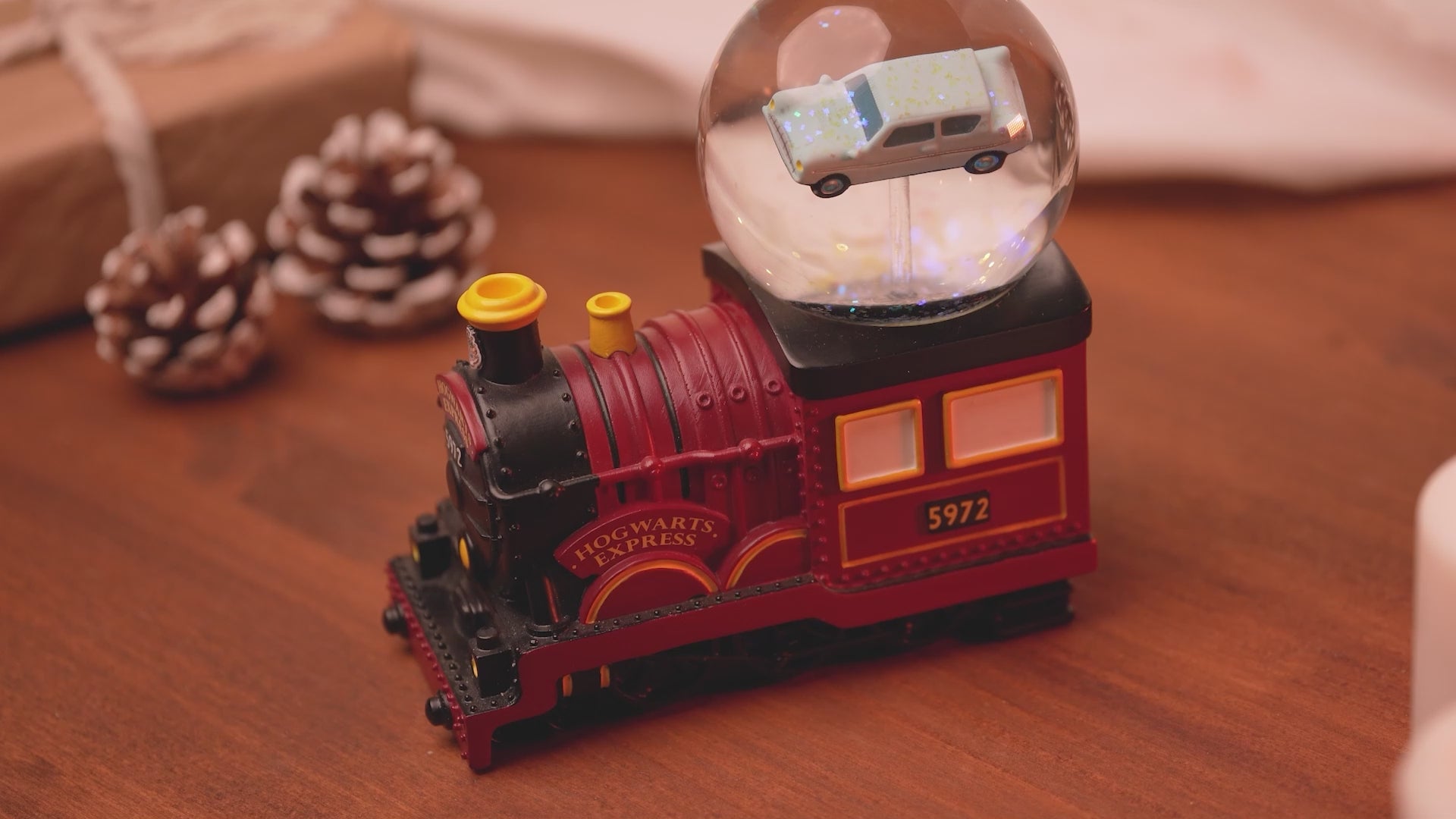 Esta bola de nieve de Harry Potter está inspirada en el Expreso de Hogwarts, el tren que sale desde el andén 9 ¾ de la estación de King's Cross. Dentro de la bola aparece el Ford Anglia que usaron Harry y Ron para llegar hasta Hogwarts en su segundo año de curso.