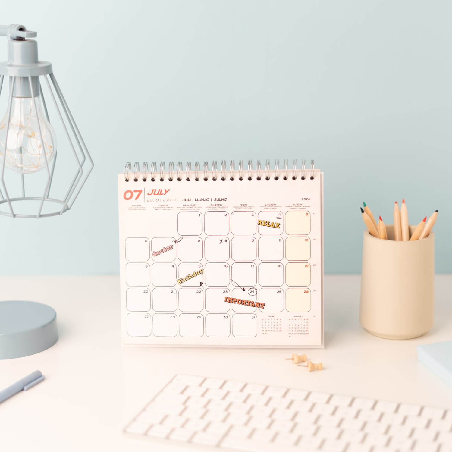 Este calendario de escritorio de Marvel tiene una duración total de 12 meses que abarcan desde Enero hasta Diciembre de 2026. Cuenta con dos formatos de calendario mensual e incluye una imagen diferente para cada mes del año. Idiomas: inglés, español, francés, alemán, italiano y portugués.