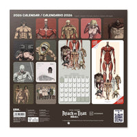 Este calendario de pared de Attack On Titan tiene una duración total de 12 meses que abarcan desde Enero hasta Diciembre de 2026. Contiene 12 ilustraciones y un póster de la serie de anime en su interior. Respecto a su tamaño, mide 30 x 30 cm cuando está cerrado y 30 x 60 cuando está abierto. Incluye los siguientes idiomas: inglés, español, francés, alemán, italiano y portugués.