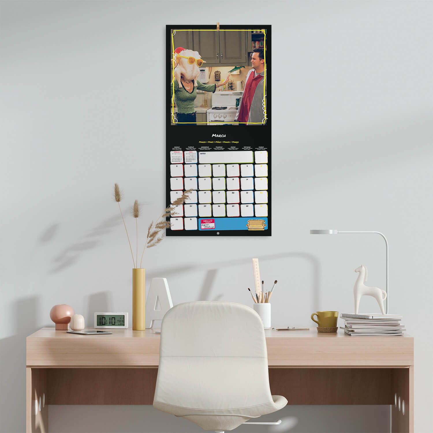 Este calendario de pared de Friends tiene una duración total de 12 meses que abarcan desde Enero hasta Diciembre de 2026. Contiene 12 ilustraciones y un póster en su interior. Respecto a su tamaño, mide 30 x 30 cm cuando está cerrado y 30 x 60 cuando está abierto. Incluye los siguientes idiomas: inglés, español, francés, alemán, italiano y portugués.