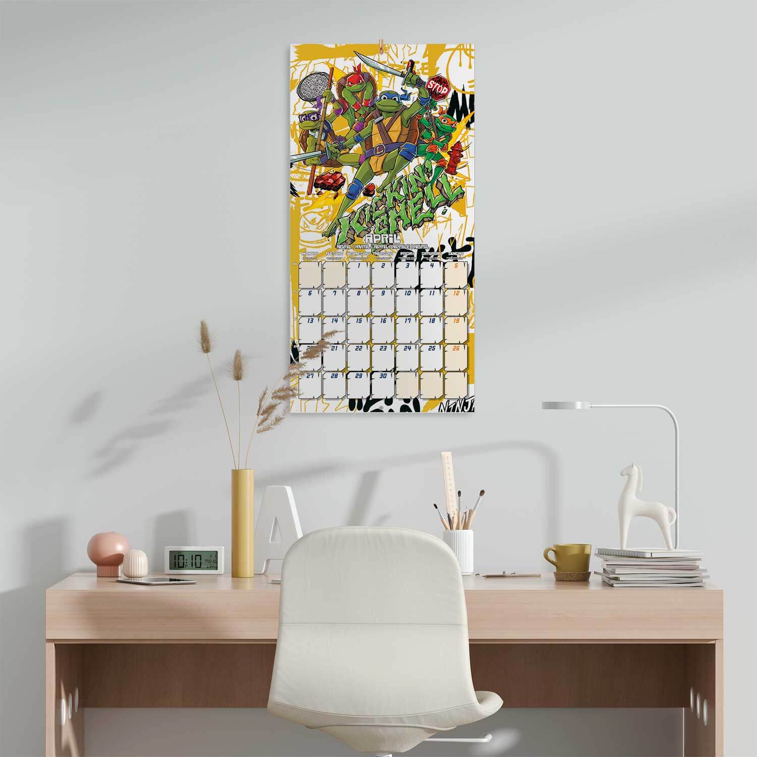 Este calendario de pared de las Tortugas Ninja tiene una duración total de 12 meses que abarcan desde Enero hasta Diciembre de 2026. Contiene 12 ilustraciones y un póster en su interior. Respecto a su tamaño, mide 30 x 30 cm cuando está cerrado y 30 x 60 cuando está abierto. Incluye los siguientes idiomas: inglés, español, francés, alemán, italiano y portugués.