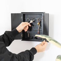 Cuenta con con 6 colgadores de aluminio en su interior y sistema push-to-open para una fácil abertura de las puertas. El gráfico frontal está impreso con tinta luminiscente, permitiendo que sea visible en la oscuridad, una vez haya absorbido luz natural o UV. Dispone de dos anclajes en su parte trasera para colgarlo fácilmente. Está fabricado en madera MDF y mide aproximadamente 26 cm de alto por 21 cm de ancho por 6 cm de profundidad.