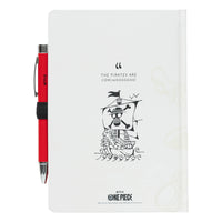 Este cuaderno de One Piece incluye 96 hojas (192 páginas) de tamaño A5 de 100 gr de grosor y viene con un bolígrafo a juego incluido que muestra el logo de los Piratas de Sombrero de Paja.