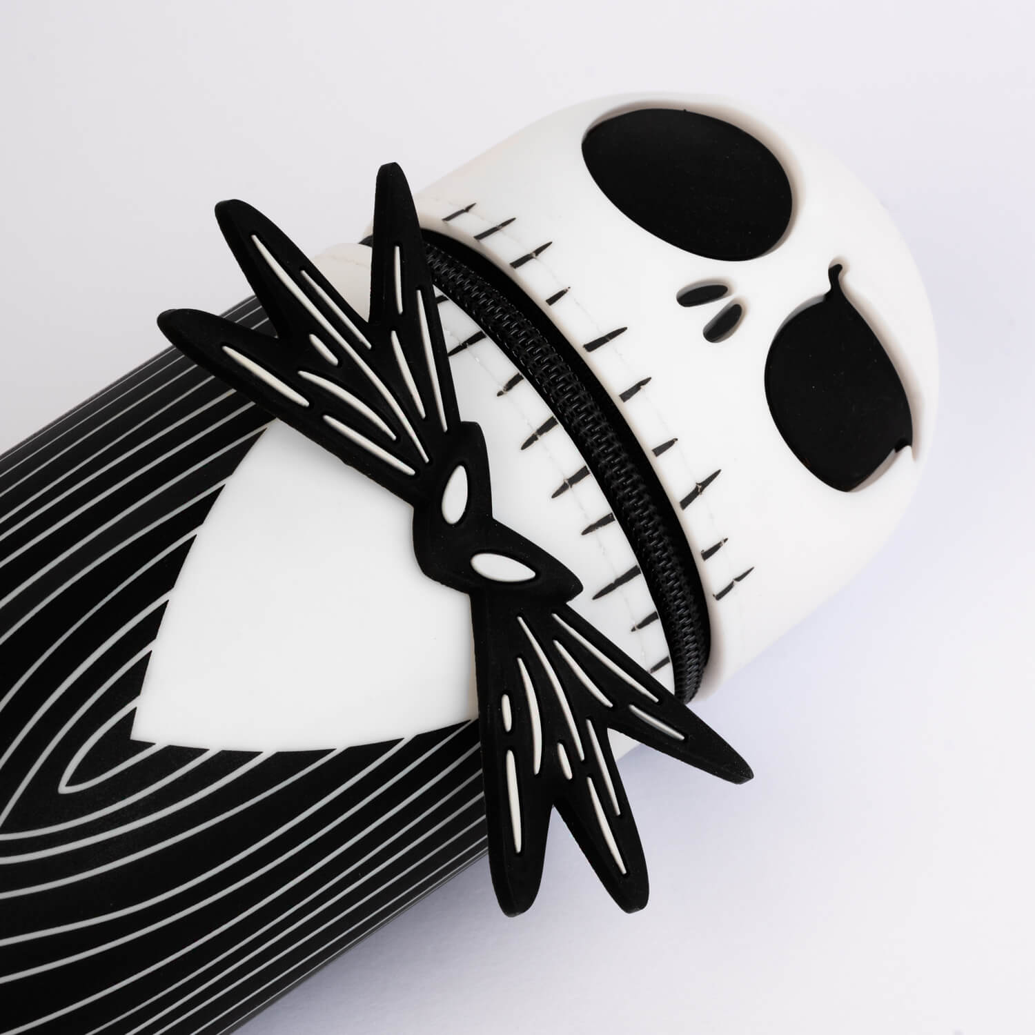 Guarda tus lápices, boligrafos y otros materiales en este fantástico estuche de Pesadilla Antes de Navidad, con diseño de Jack Skellington, el rey de Ciudad Halloween.