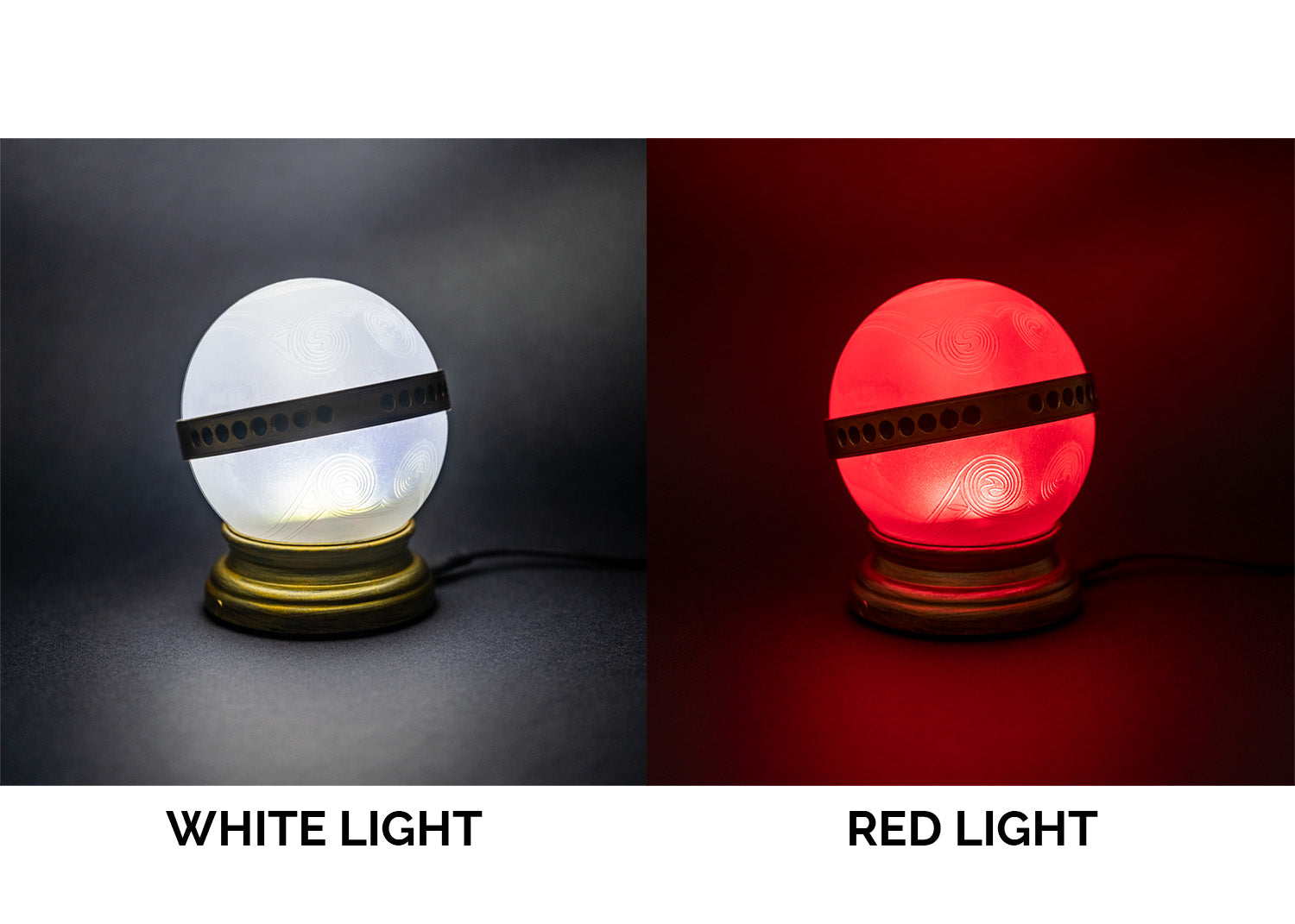 Esta lámpara de Harry Potter está inspirada en la Recordadora de Neville que aparece en las películas de la saga. Incluye 2 modos de iluminación: luz blanca o luz roja, los cuáles se accionan por medio de pulsaciones cortas sobre un botón de control táctil situado en la base de la lámpara. También puedes controlar la intensidad de la luz, ya que permite que la iluminación se atenúe o intensifique si se pulsa de forma prolongada.