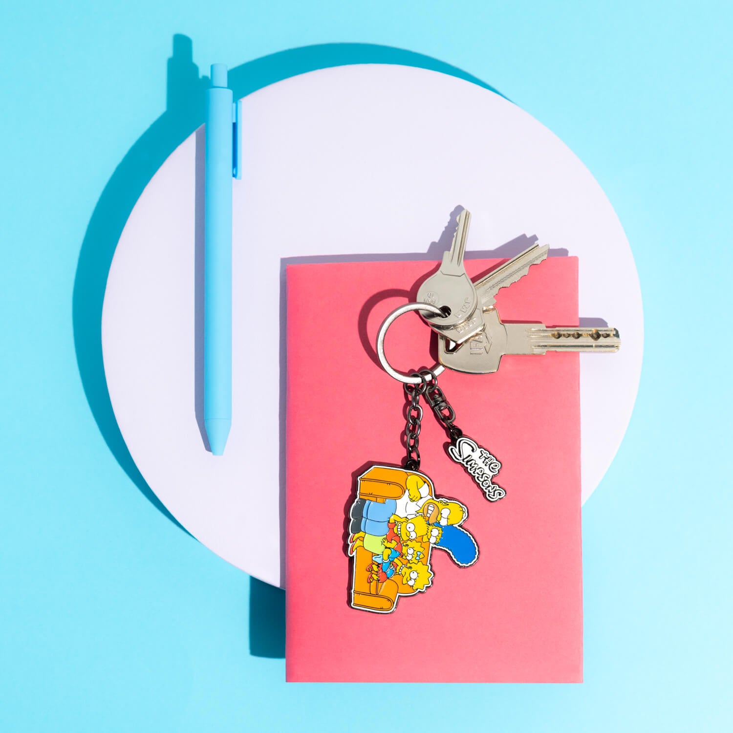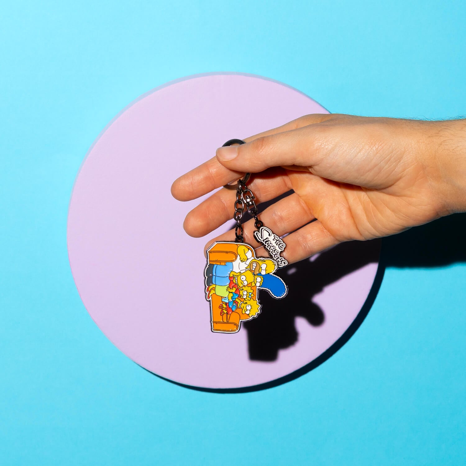 Este llavero de Los Simpson es el complemento perfecto para tus llaves y un artículo ideal para cualquier fan de la serie. Inspirado en la icónica escena del sofá, reúne a Homer, Marge, Bart, Lisa y Maggie en un diseño lleno de color. Está fabricado en aleación de zinc de gran calidad con la superficie esmaltada. Tiene un tamaño de 12 centímetros aproximadamente.