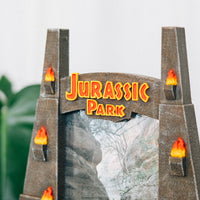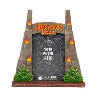 Revive la emoción de una de las sagas más épicas del cine con este marco de fotos de Jurassic Park, inspirado en la icónica puerta de entrada que da la bienvenida al parque de dinosaurios más famoso del mundo.