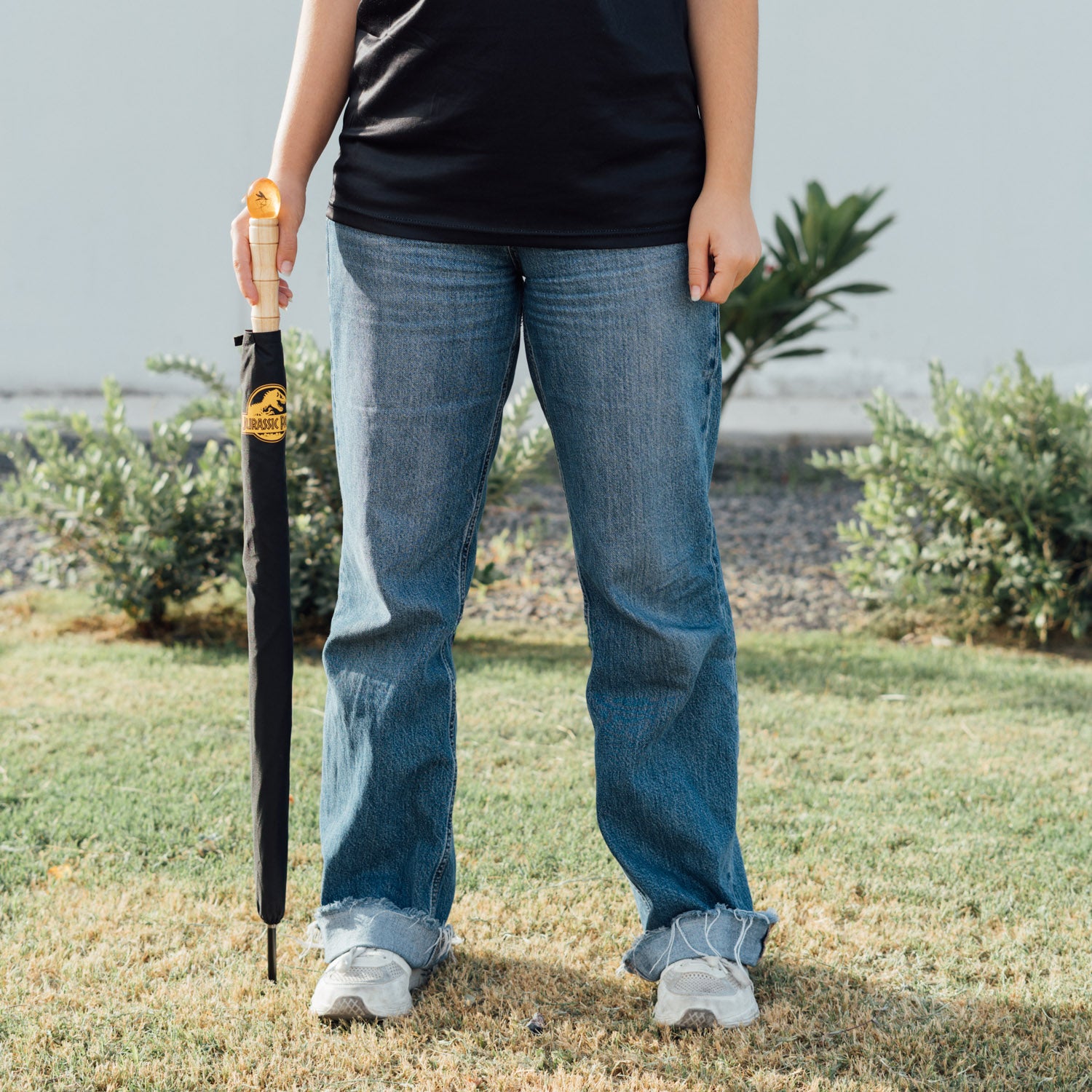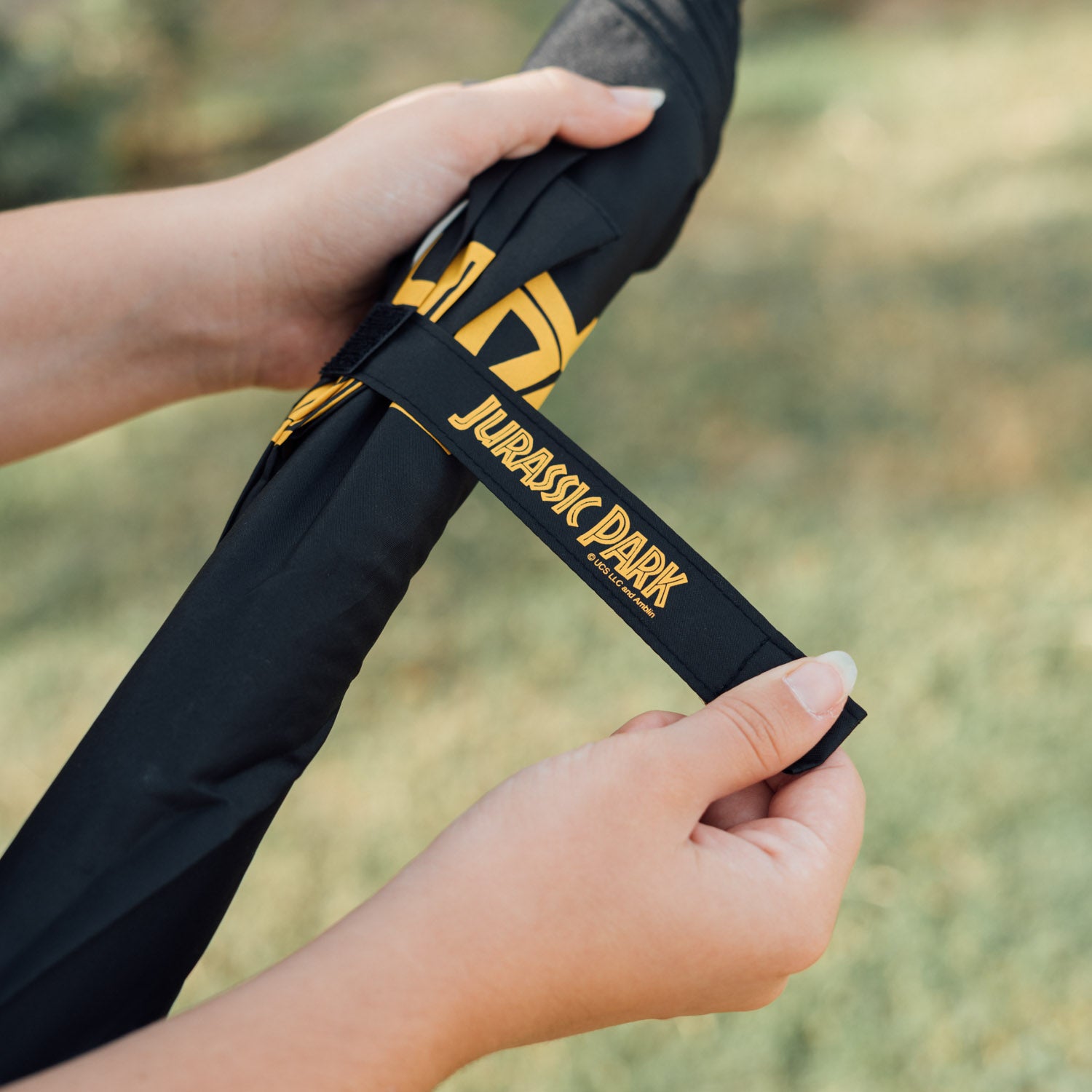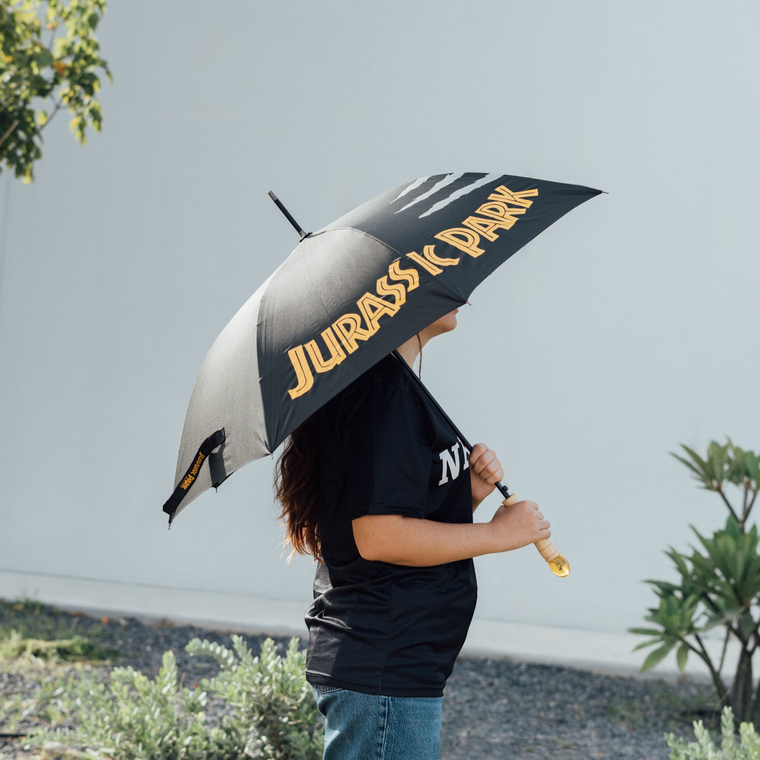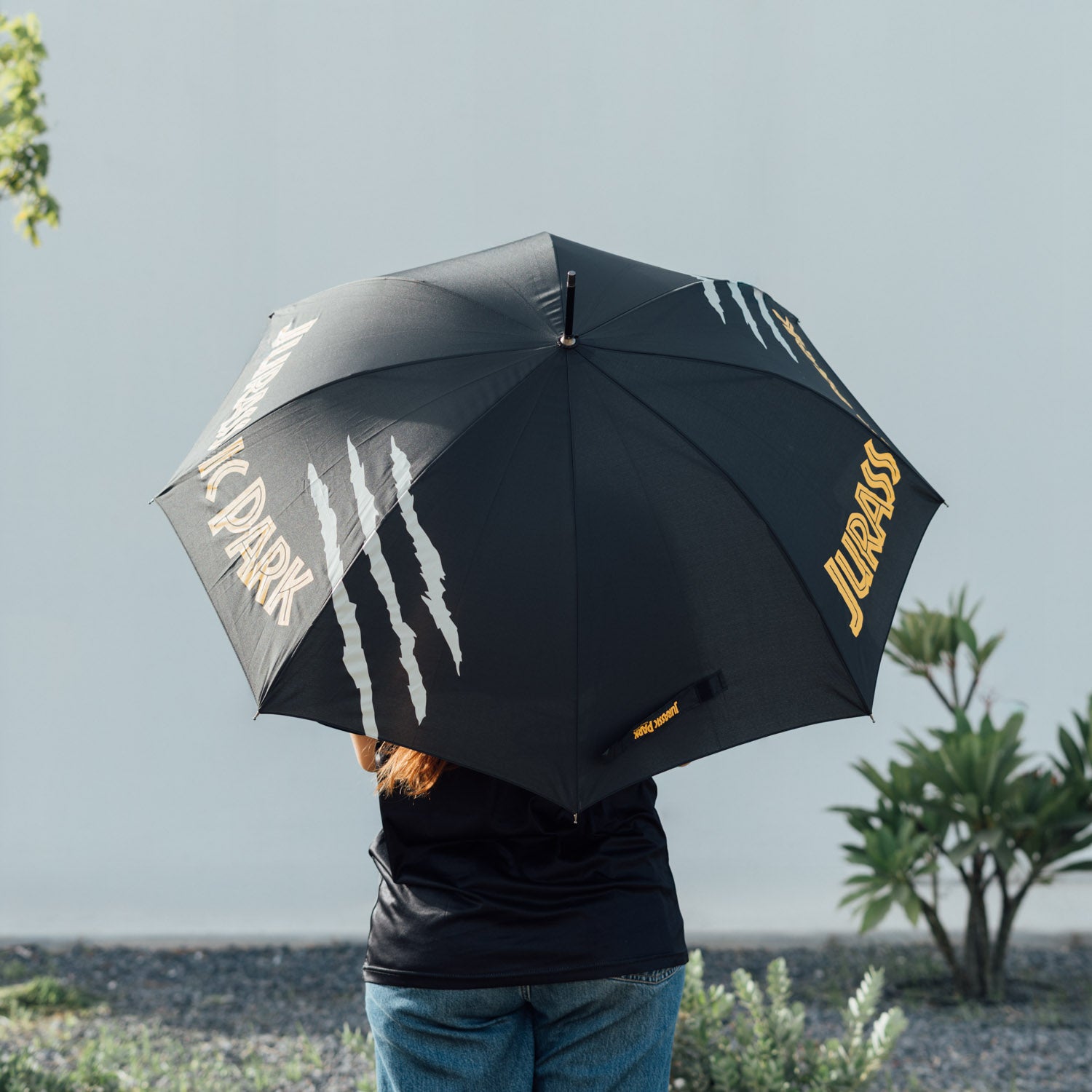 Este paraguas de Jurassic Park está fabricado en poliéster y cuenta con una estructura resistente hecha de metal y PVC con sistema de apertura automático. Mide 90 cm de alto y tiene un diámetro de 105 cm cuando está abierto.